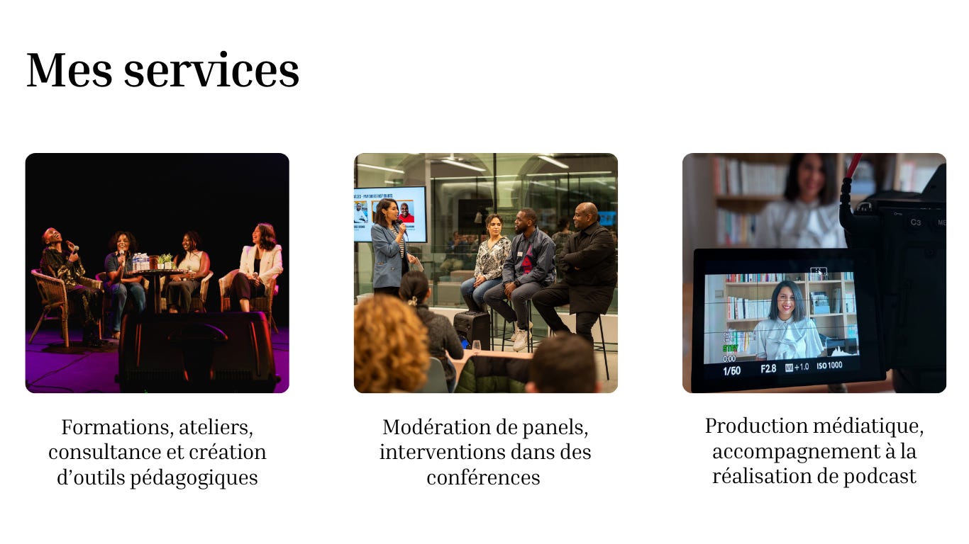 Dans ce cadre, je propose des accompagnements pour comprendre et agir concrètement contre le racisme, le sexisme, l’antisémitisme et l’islamophobie. Le tout dans une perspective intersectionnelle.